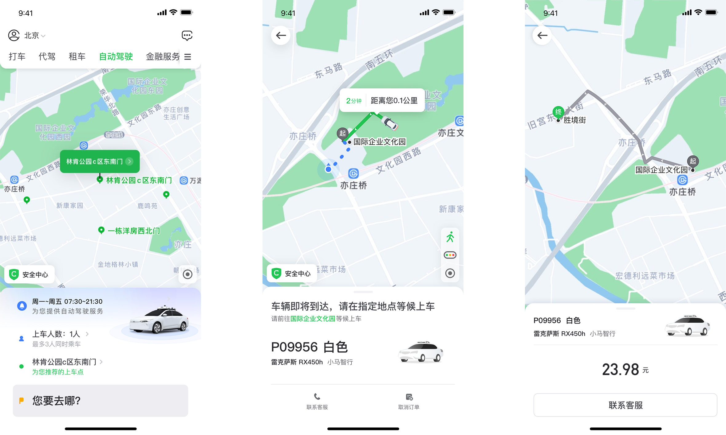 8月3日起,北京地区的用户可通过曹操出行App“自动驾驶”专属入口,预约由小马智行提供的Robotaxi服务(PonyPilot+)。下单呼叫前,乘客需选择乘坐人数、出发地和目的地,乘坐和支付流程与普通网约车服务并无差别。
