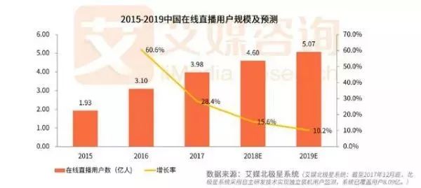 《2018Q1中国在线直播行业研究报告》显示,2017年在线直播用户规模达到3.98亿人,预计2018年在线直播用户规模达4.60亿人,2019年达5.07亿人。用户基数虽在不断扩大,但增速有所减缓,随着人口红利逐渐消失,在线直播行业已经进入竞争的“下半场”。