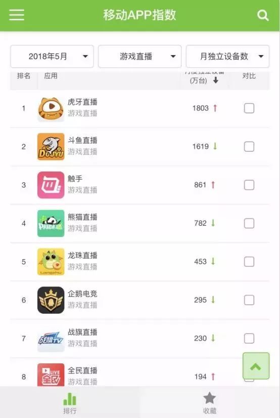 截止到今年6月份,在游戏直播平台中,熊猫直播APP用户渗透率为1.58%,排在第三,而排在前两位的分别为斗鱼和虎牙。