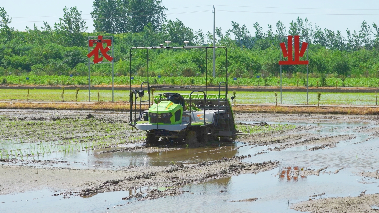 无人农机正在开展晚稻插秧(供图:中联农机)