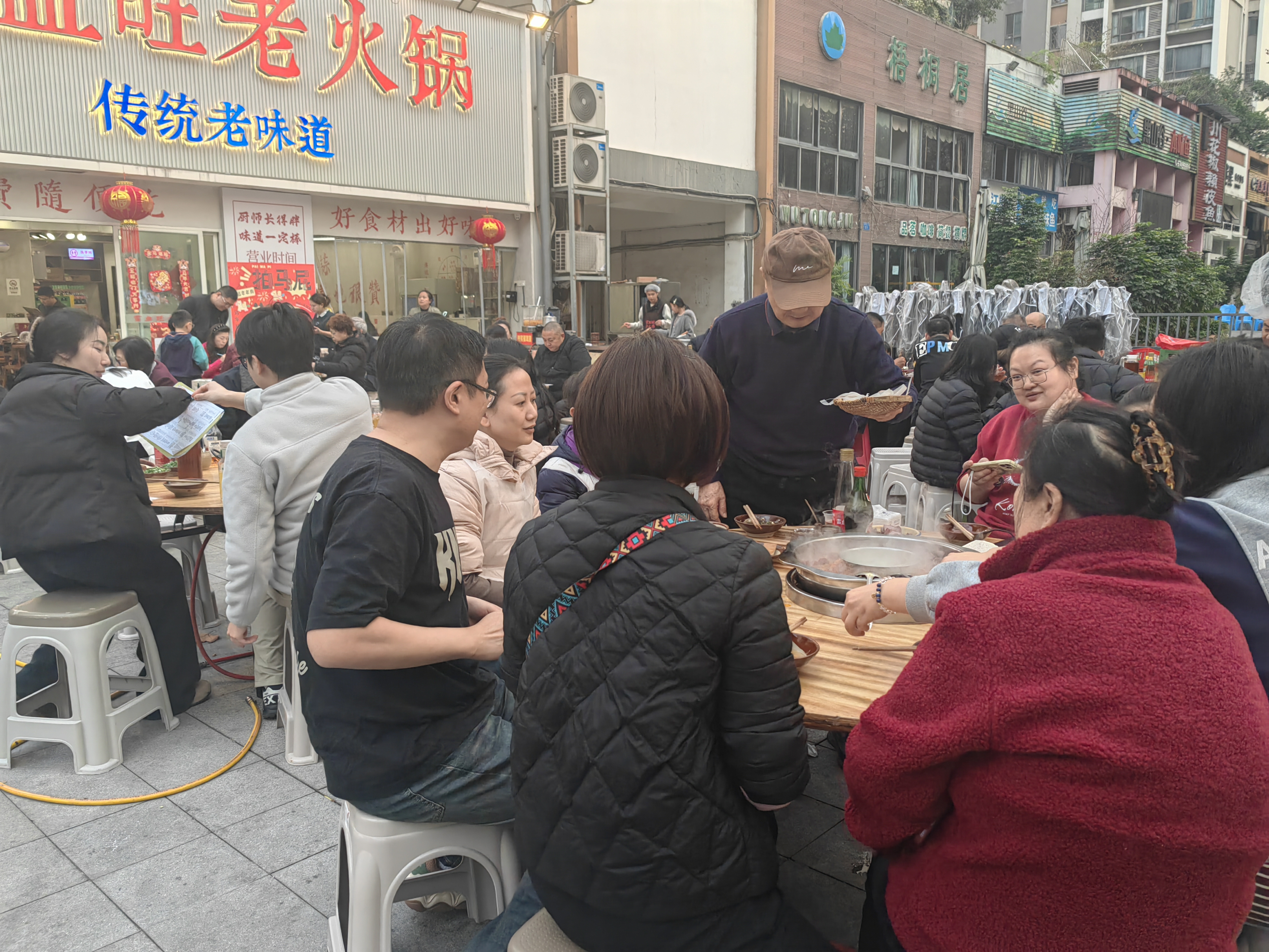 腊月二十八,重庆两江新区血旺老火锅店热闹非凡,市民吴欣(化名)筹备了一桌地道的重庆火锅,用以款待亲朋好友以及远道而来游玩的外省朋友。身为东道主,她挑选的“小酥肉”“毛血旺”等地方特色佳肴,既保留了传统年味的醇厚底蕴,又融入了重庆独有的特色风味,让人唇齿留香。