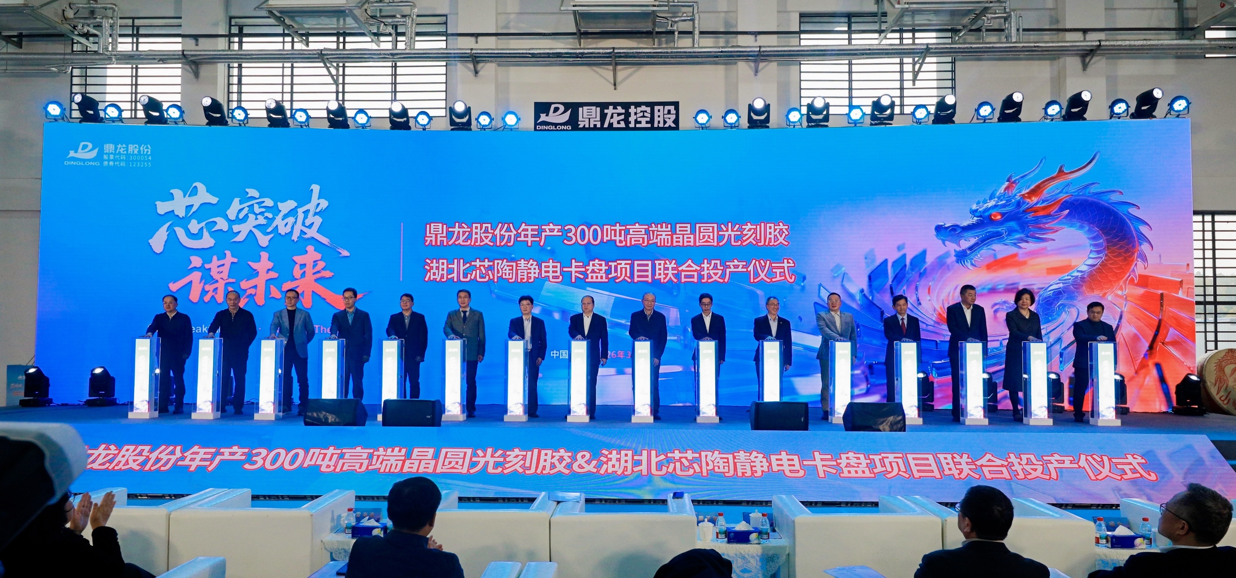 本报讯 (记者李万晨曦)3月20日,湖北鼎龙控股股份有限公司(以下简称“鼎龙股份”)在武汉总部举行“芯突破·谋未来——鼎龙股份年产300吨高端晶圆光刻胶&湖北芯陶静电卡盘项目联合投产仪式”。随着启动按钮按下,鼎龙股份年产300吨高端晶圆光刻胶项目,以及与鼎龙股份属同一实际控制人背景的友邻企业——湖北芯陶科技有限公司(以下简称“湖北芯陶”)先进制程静电卡盘项目同步宣告投产。