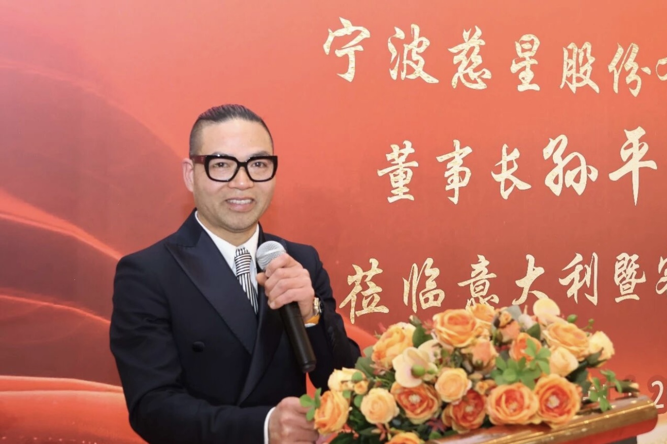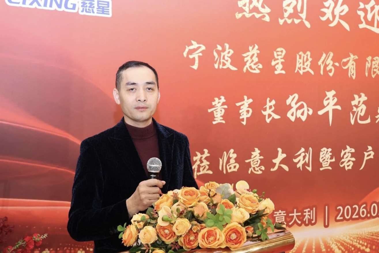 旅意福建华侨华人同乡总会首席执行会长陈少山随后发言,陈会长感慨旅意侨胞在海外创业发展不易,离不开像慈星股份这样有实力、有技术、有服务保障的企业提供强大支撑。陈会长希望今后企业与旅意华商之间加强合作、互相支持,在事业发展的道路上携手前行,实现互利共赢。