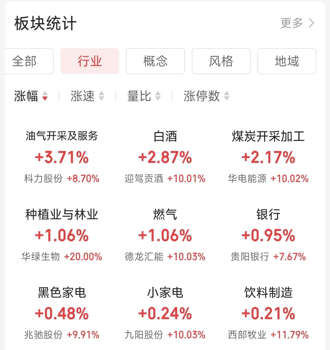 iFinD数据显示,截至4月23日上午收盘,在同花顺A股二级行业中,油气开采及服务行业涨幅达到3.71%,位居榜首。白酒(涨幅2.87%)、煤炭开采加工(涨幅2.17%)、种植业与林业(涨幅1.06%)、燃气(涨幅1.06%)等行业紧随其后。