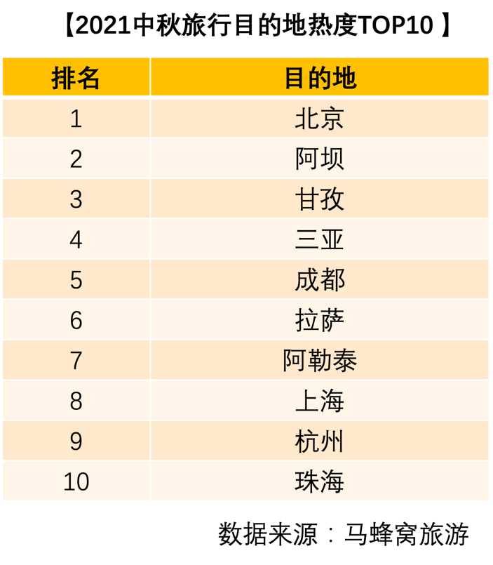 目的地方面,中秋期间旅行热度最高的城市前十名分别为:北京、阿坝、甘孜、三亚、成都、拉萨、阿勒泰、上海、杭州和珠海。北京凭借环球影城的盛大开园拔得头筹。专程来京打卡环球影城的游客同样不会错过其它传统知名景点:故宫、颐和园、国家博物馆等景点客流量相较于端午均呈大幅增长。除北京、上海、杭州等大城市,阿坝、甘孜、阿勒泰等小众目的地也凭借“撩人”秋色名列前茅。