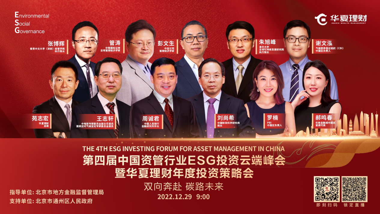 12月29日,由华夏理财主办的第四届中国资管行业ESG投资云端峰会暨华夏理财年度投资策略会以云端形式召开。此次云端高峰论坛邀请了社会各界权威专家齐聚一堂,围绕市场关注的财政政策、宏观经济、双碳政策、ESG投资等主题进行深度探讨与分析,共同展望明年投资形势。