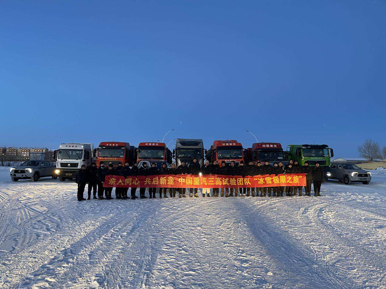 本次海拉尔高寒挑战之旅,中国重汽整车“三高”试验团队在平均气温-30℃的环境下开展多项试验,数十台重汽卡车在这里将经历制动系统低温密封性测试、怠速试验、操控稳定性及平稳性寒区适应性等试验项目,向极寒发起挑战,我们期待着中国重汽产品的极致表现,也祝愿中国重汽整车“三高”试验团队能够圆满完成此次试验任务,破冰凯旋。