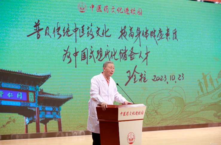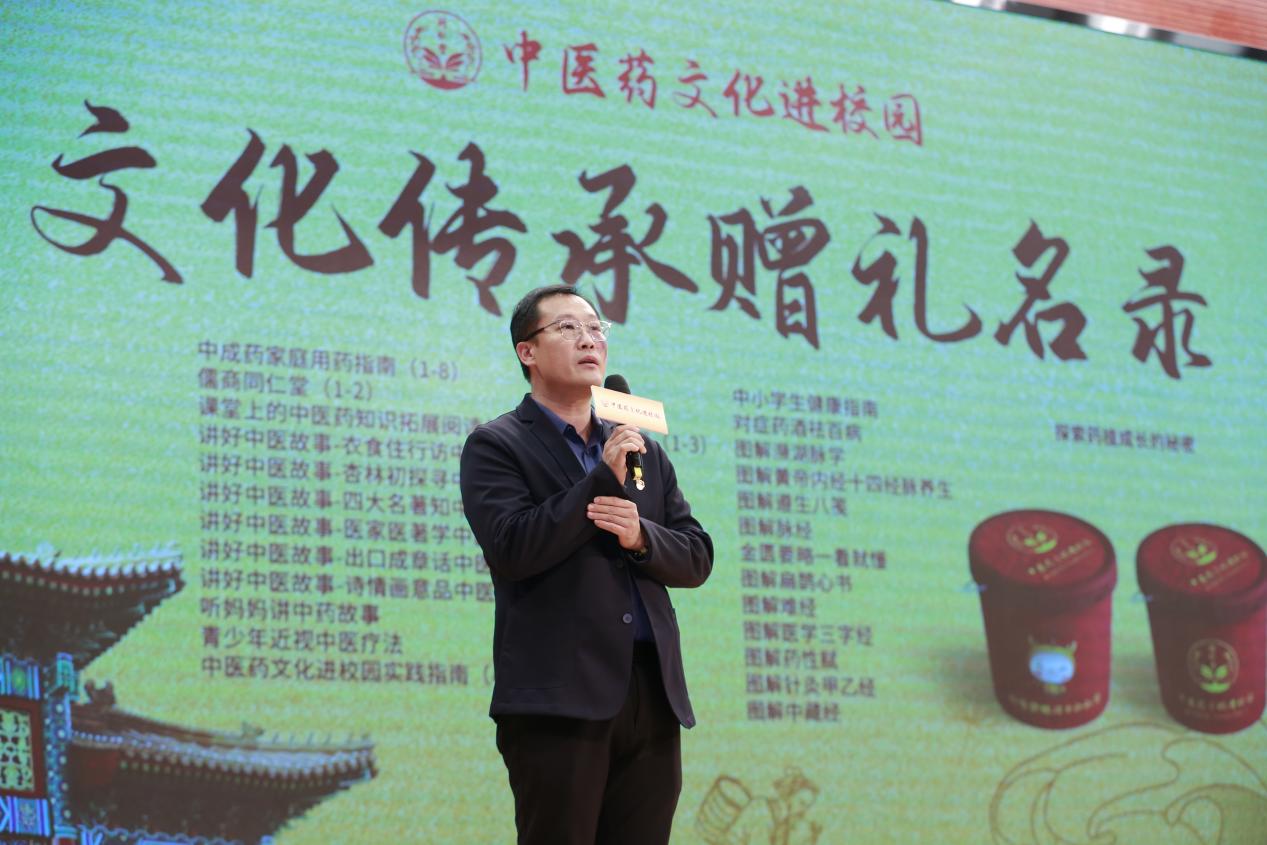 北京同仁堂(集团)有限责任公司纪委委员,北京同仁堂科技发展股份有限公司党委委员、纪委书记李平在致辞中强调,增进青少年对于中医药文化的理解认同,是培养中医药后备人才、壮大中医药传承队伍、培育中医药市场的重要路径。李平书记提出,北京同仁堂“中医药进校园”公益系列活动,将在课程体系、授课形式、互动体验等方面尝试突破创新,进一步发掘老字号的历史底蕴和文化积淀,汇聚中医药领域的优质资源,激发青少年对中医药文化的探知热情,在润物细无声中赓续中医药文化根脉,让中医药文化在活态中焕发新的生机。