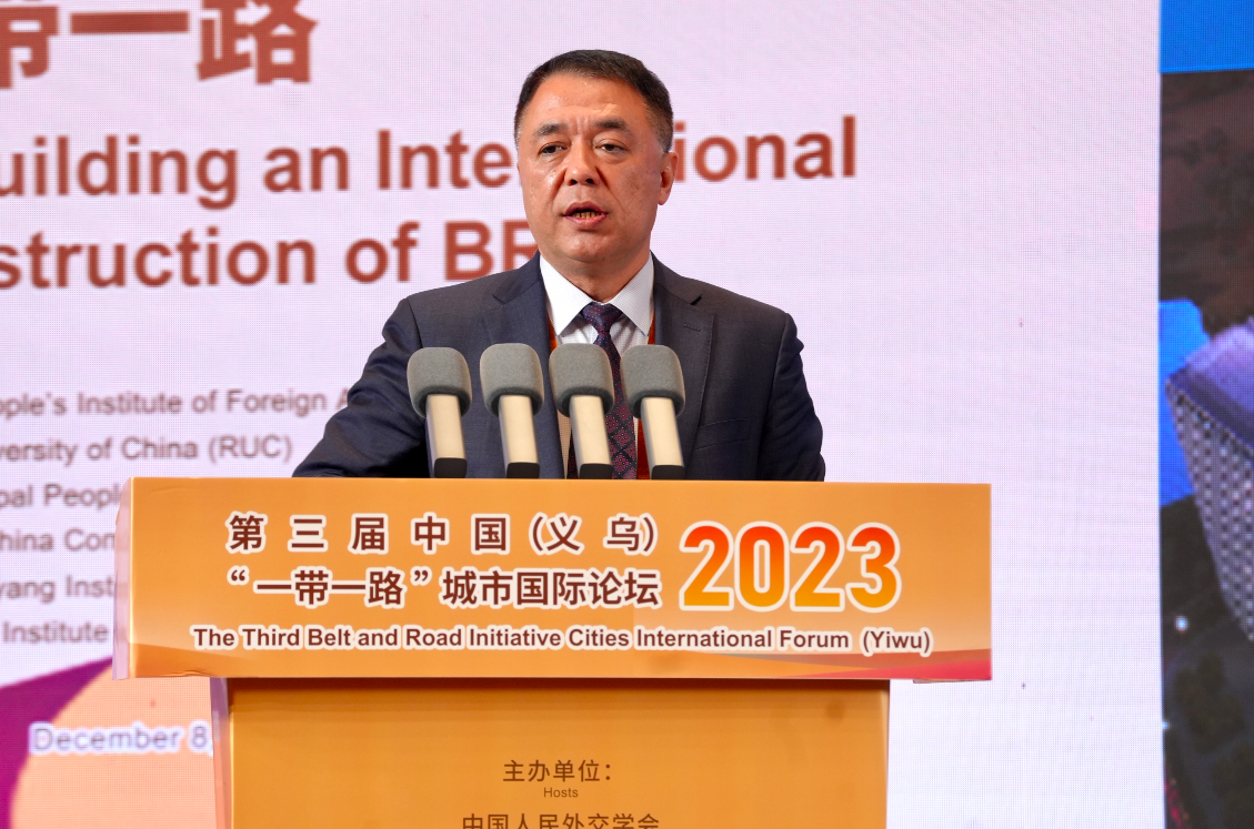 12月8日下午,第三届中国(义乌)“一带一路”城市国际论坛在幸福湖国际会议中心举行。以“物流枢纽对话:构筑国际枢纽,共建‘一带一路’”为主题的主旨论坛III由国际陆港集团牵头承办。