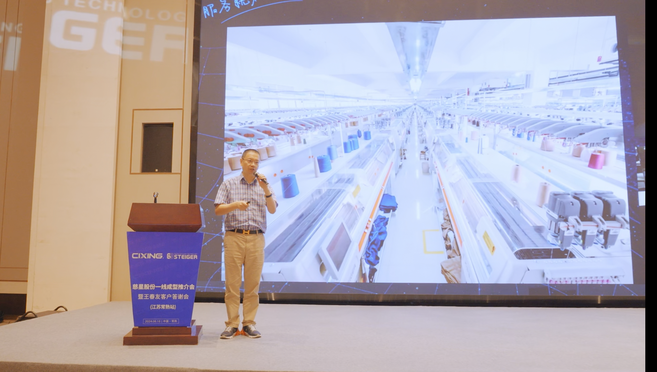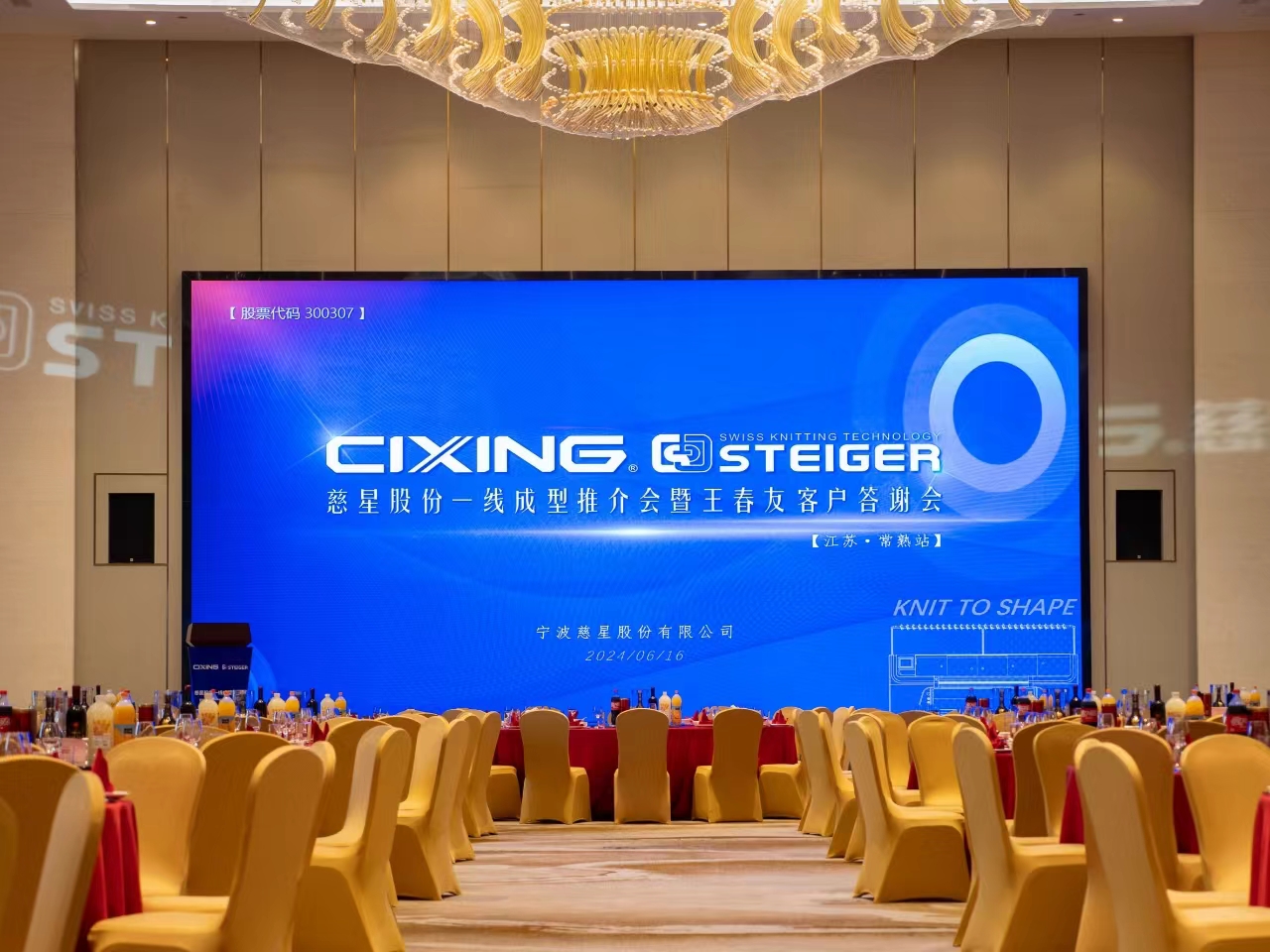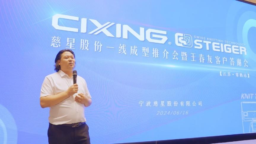 6月16日,宁波慈星股份有限公司一线成型产品推介会暨王春友客户答谢会在江苏常熟顺利举行,本次活动共有近500名慈星客户现场参与,宁波慈星股份有限公司(股票简称:慈星股份股票代码:300307)董事长孙平范先生发表讲话,活动中还展示了代表行业领先技术的一线成型电脑横机设备,进一步促进了广大针织行业客户降本增效、发展新质生产力。