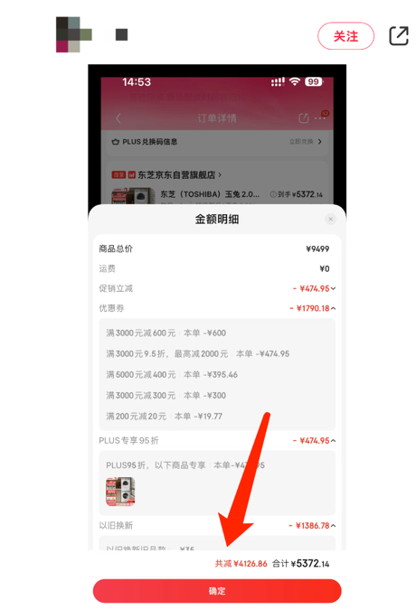 京东11.11启动后,来自北京的李先生购买了一台503升双系统冻鲜冰箱,原价为7499元。在享受政府补贴1190.83元的基础上,还可以叠加京东11.11Plus超级补贴和满减券等。最终,李先生以4263.32元的价格购得该冰箱,累计节省了超3000元。