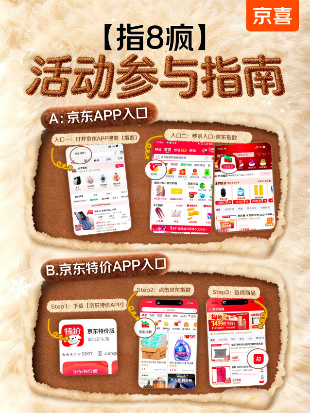 春节将至,京东指数为用户带来更实惠的年货好礼,打开京东APP搜索“指数”进入“京东指数”页面;或打开京东特价版APP,首页即有“京东指数”频道。