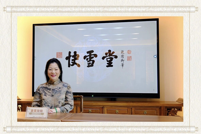 在交流沙龙上,中国香港快雪堂集团董事长董吴玲玲女士向来宾介绍了快雪堂的品牌历史,快雪堂文化交流中心创立的初衷以及个人在慈善事业上“德行天下,善心无极”的价值观。