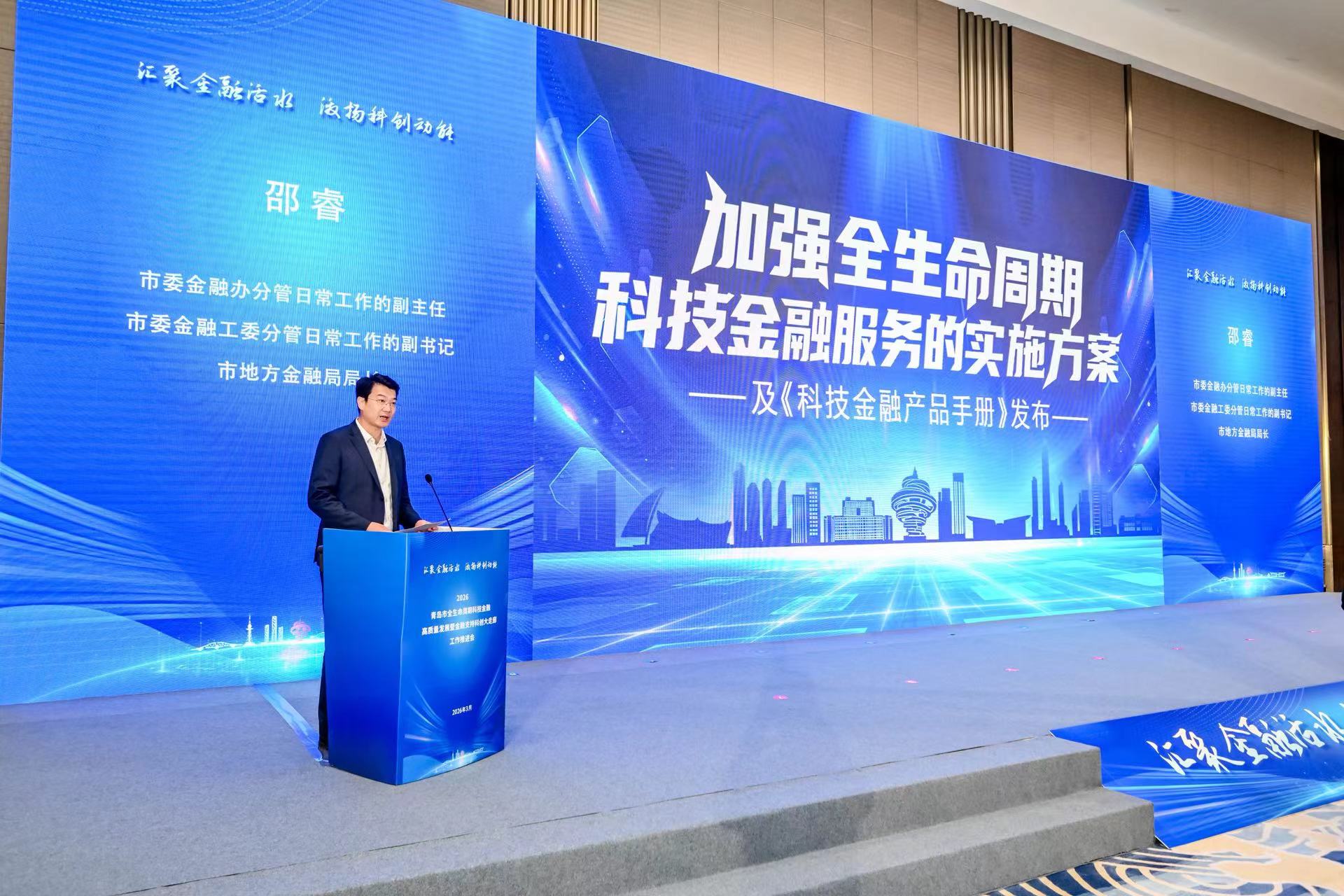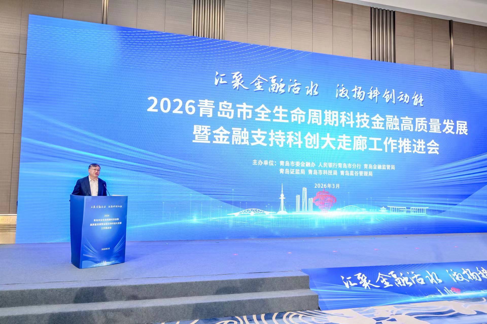 本报讯 (记者刘钊)3月17日,2026青岛市全生命周期科技金融高质量发展暨金融支持科创大走廊工作推进会在青成功举办。本次大会以“汇聚金融活水、激扬科创动能”为主题,由青岛市委金融办、人民银行青岛市分行、青岛金融监管局、青岛证监局、青岛市科技局、青岛蓝谷管理局联合主办。青岛市委副书记、市长任刚出席会议并启动青岛市科技金融创新服务基地,青岛市委常委、副市长耿涛致辞,相关市领导、相关部门,科创大走廊相关区(市)、功能区,以及全市40余家科创企业,70余家银行、保险、证券、创投风投机构主要负责同志参加活动并现场对接。