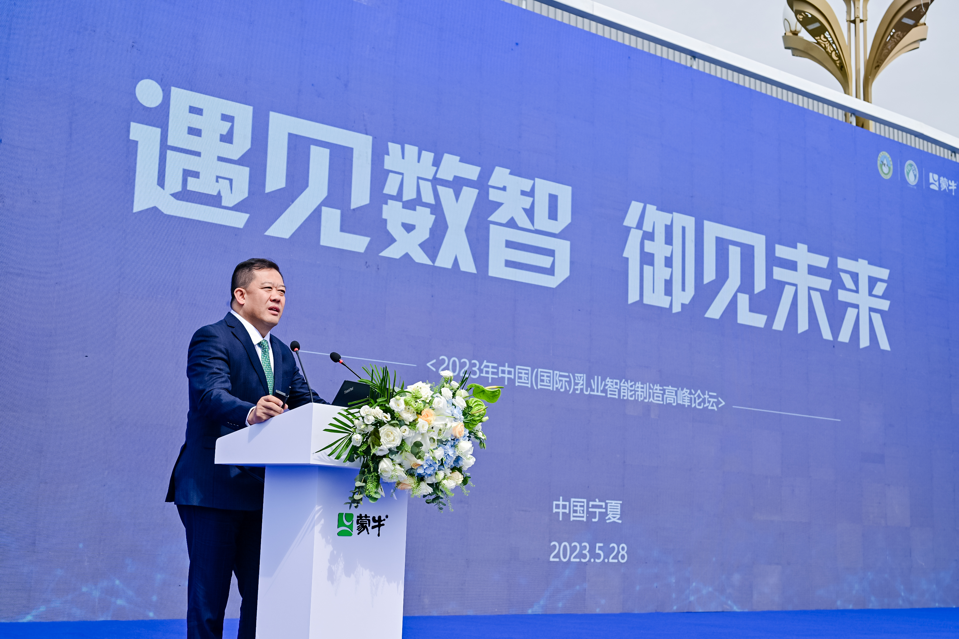 2023年5月28日,高飞在全球乳业首座全数智化工厂——蒙牛宁夏工厂落成投产仪式上致辞