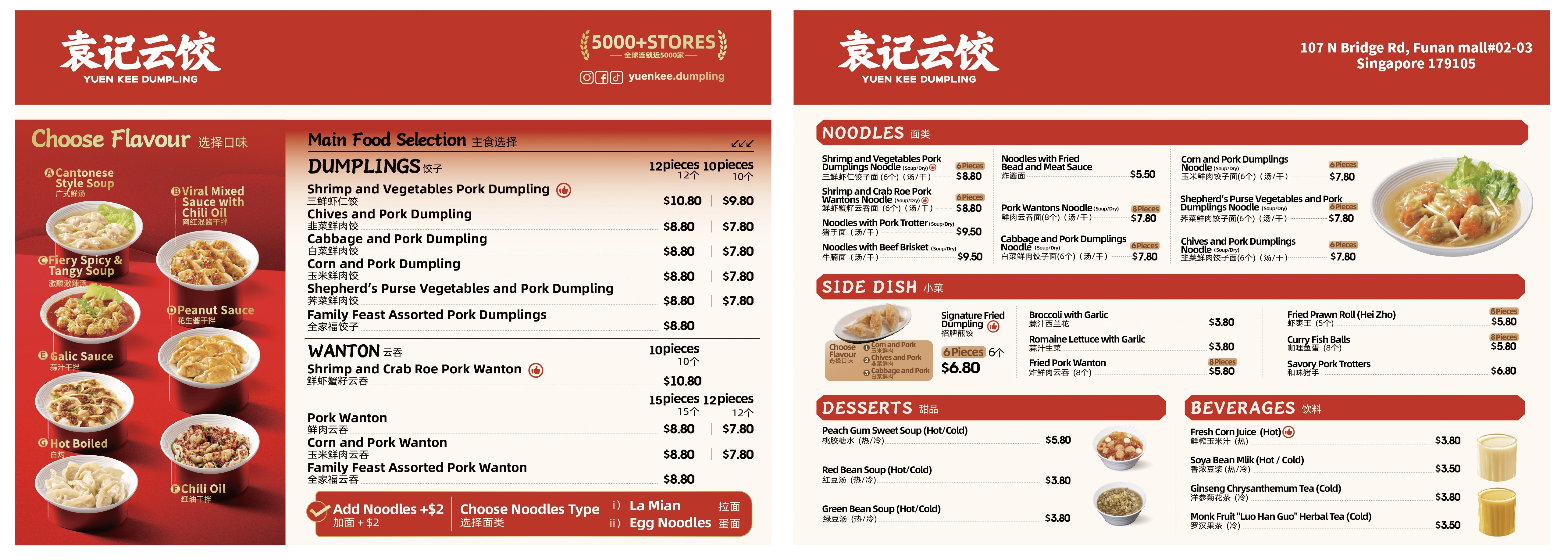(袁记云饺新加坡门店菜单)