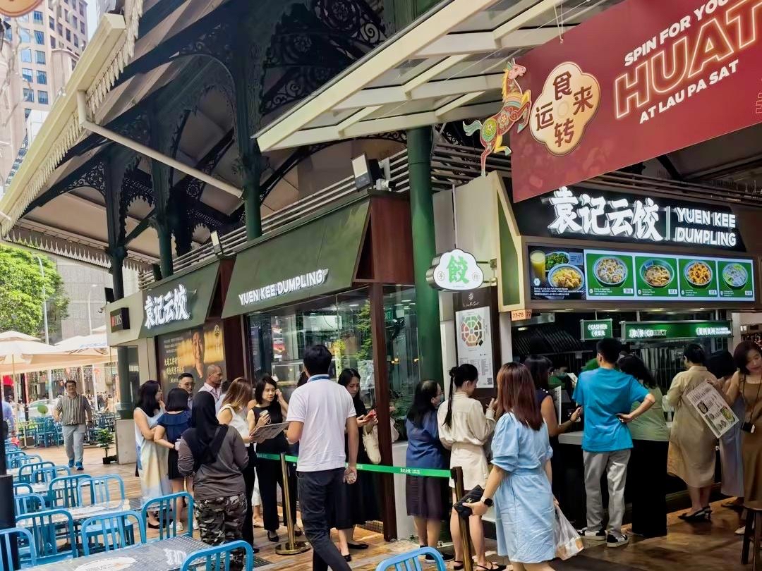 本报讯 (记者李静)2026年2月9日,位于新加坡老巴刹Kopitiam食阁店前,食客们排起了购买饺子和云吞的队伍。这是中式快餐连锁品牌袁记云饺在当地开设的第13家门店。自2024年底进入新加坡市场以来,该品牌在一年左右的时间里,以约平均每月一家的速度拓展门店。