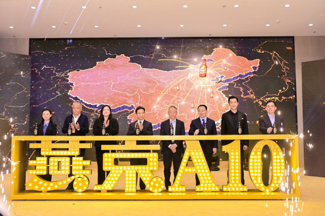 发布会最后,李欣、宋书玉、耿超、胡歌以及各方嘉宾共同登台点亮“燕京A10”的字样,这款酝酿三年的产品,正式走向市场。