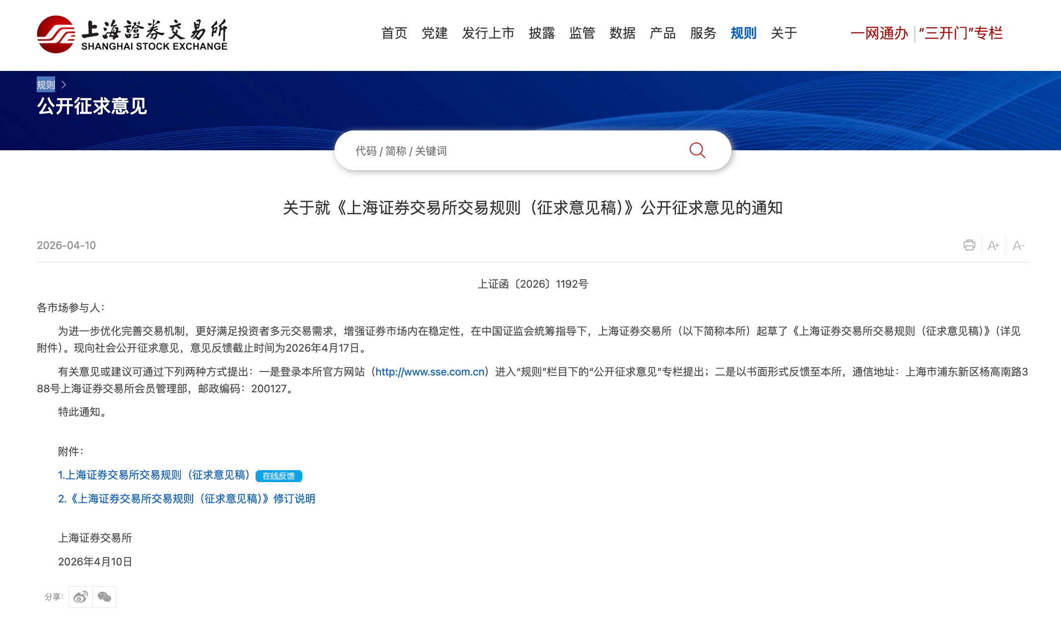 4月10日,上海证券交易所(以下简称“上交所”)发布关于就《上海证券交易所交易规则(征求意见稿)》(以下简称《交易规则》)公开征求意见的通知。