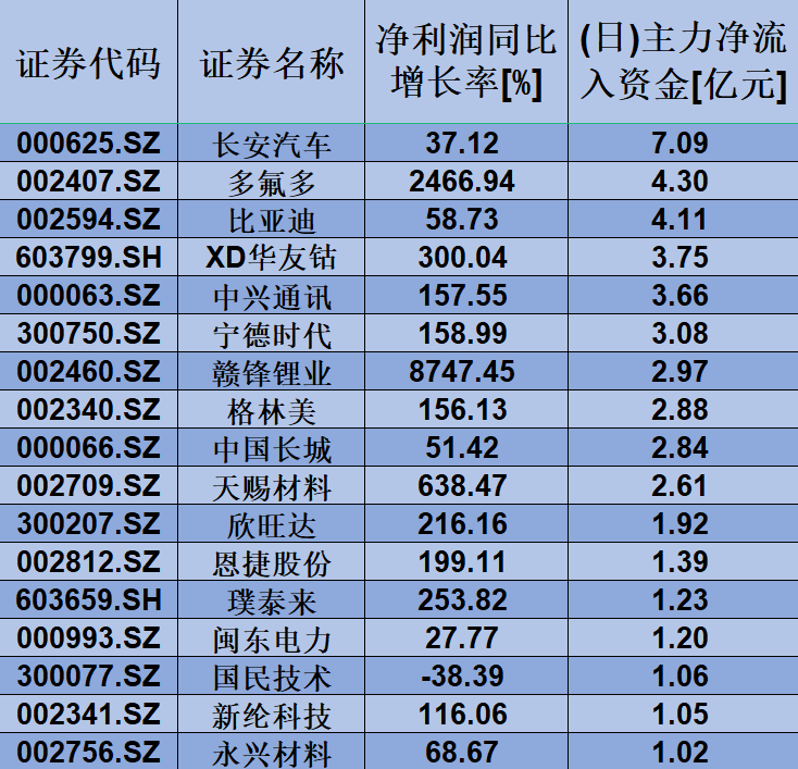 表:5月28日,锂电池板块主力净流入资金过1亿元股一览