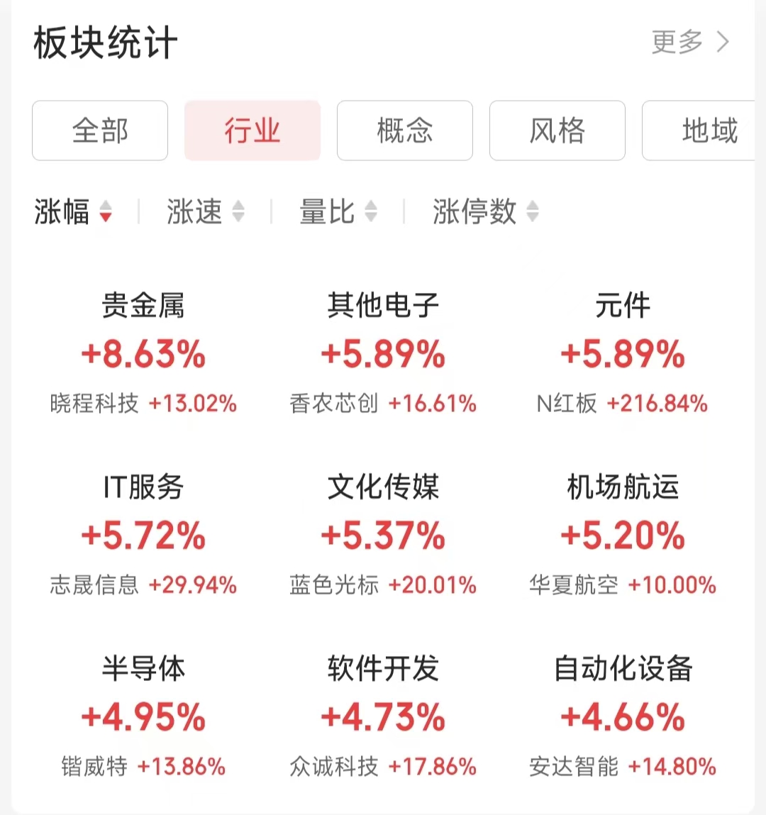 行业热点方面,iFinD数据显示,截至4月8日上午收盘,在同花顺A股二级行业中,贵金属行业涨幅达到8.63%,位居榜首。其他电子(涨幅5.89%)、元件(涨幅5.89%)、IT服务(涨幅5.72%)等科技及算力相关行业紧随其后。此外,文化传媒、机场航运、半导体等行业也录得较大涨幅。