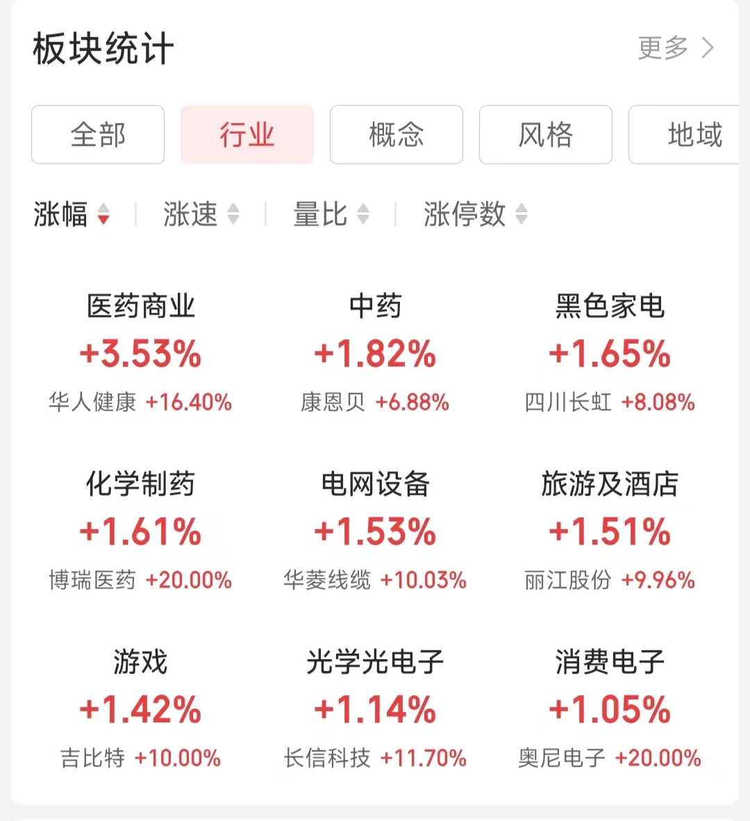 行业热点方面,iFinD数据显示,截至4月15日上午收盘,在同花顺A股二级行业中,医药商业行业涨幅达到3.53%,位居榜首。中药(涨幅1.82%)、黑色家电(涨幅1.65%)、化学制药(涨幅1.61%)等行业紧随其后。此外,电网设备、旅游及酒店、游戏等行业也录得小幅上涨。