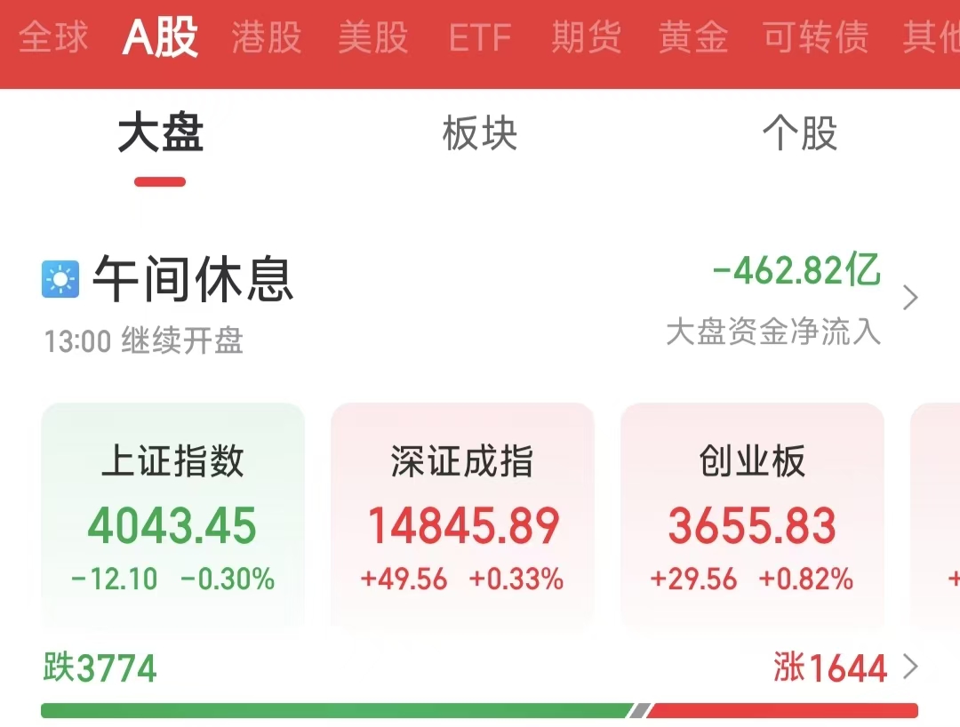 周五(4月17日),今日早盘市场展现较强韧性,虽沪指略有休整,但深证成指、创业板指延续反弹势头,市场结构性机会依然丰富。截至上午收盘,上证指数下跌0.3%,报4043.45点;深证成指上涨0.33%,报14845.89点;创业板指上涨0.82%,报3655.83点。沪深两市合计成交额15805.19亿元,市场交投活跃。总体来看,个股跌多涨少,共有1644只个股实现上涨。