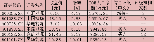表:4月28日,同花顺煤炭开采加工板块DDE大单净额超5000万元个股一览制表/姚尧