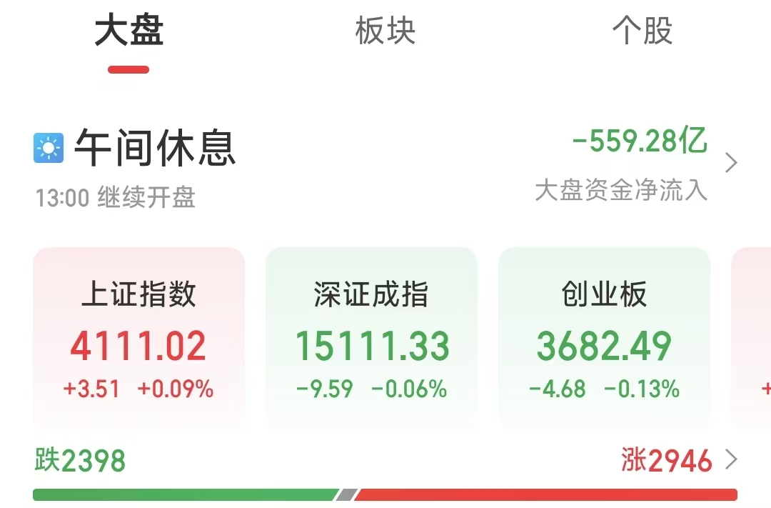 周四(4月30日)早盘,A股市场呈现窄幅震荡,多空平衡态势。截至上午收盘,上证指数上涨0.09%,报4111.02点;深证成指下跌0.06%,报15111.33点;创业板指下跌0.13%,报3682.49点。不过,科创50指数表现亮眼,大涨4.71%,报1563.86点。市场交投热情高涨,个股呈现涨多跌少格局,共有2946只个股实现上涨。沪深两市合计成交额1.81万亿元,较上一交易日同期明显放大,整体维持在活跃区间。