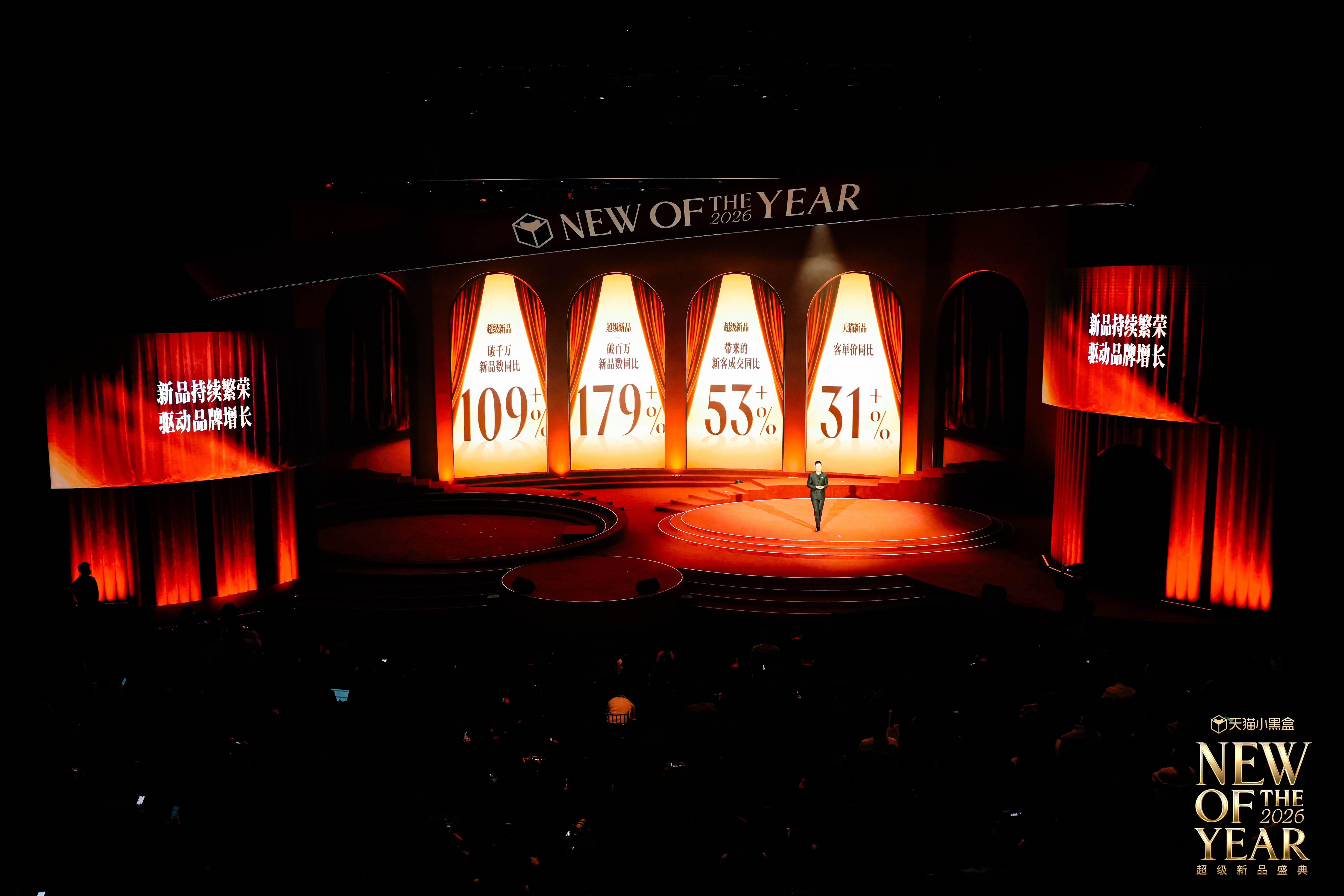1月16日,NEWty2026天猫超级新品盛典在上海举办。盛典回顾了2025年亮眼新品增长成绩的同时,正式发布了2026年优质新品扶持核心举措,同时公布涵盖百大年度新品的六大新品奖项,颁发年度商业人物奖,并特别设立女性专项表彰,联动商业与公益,凝聚行业创新力量。