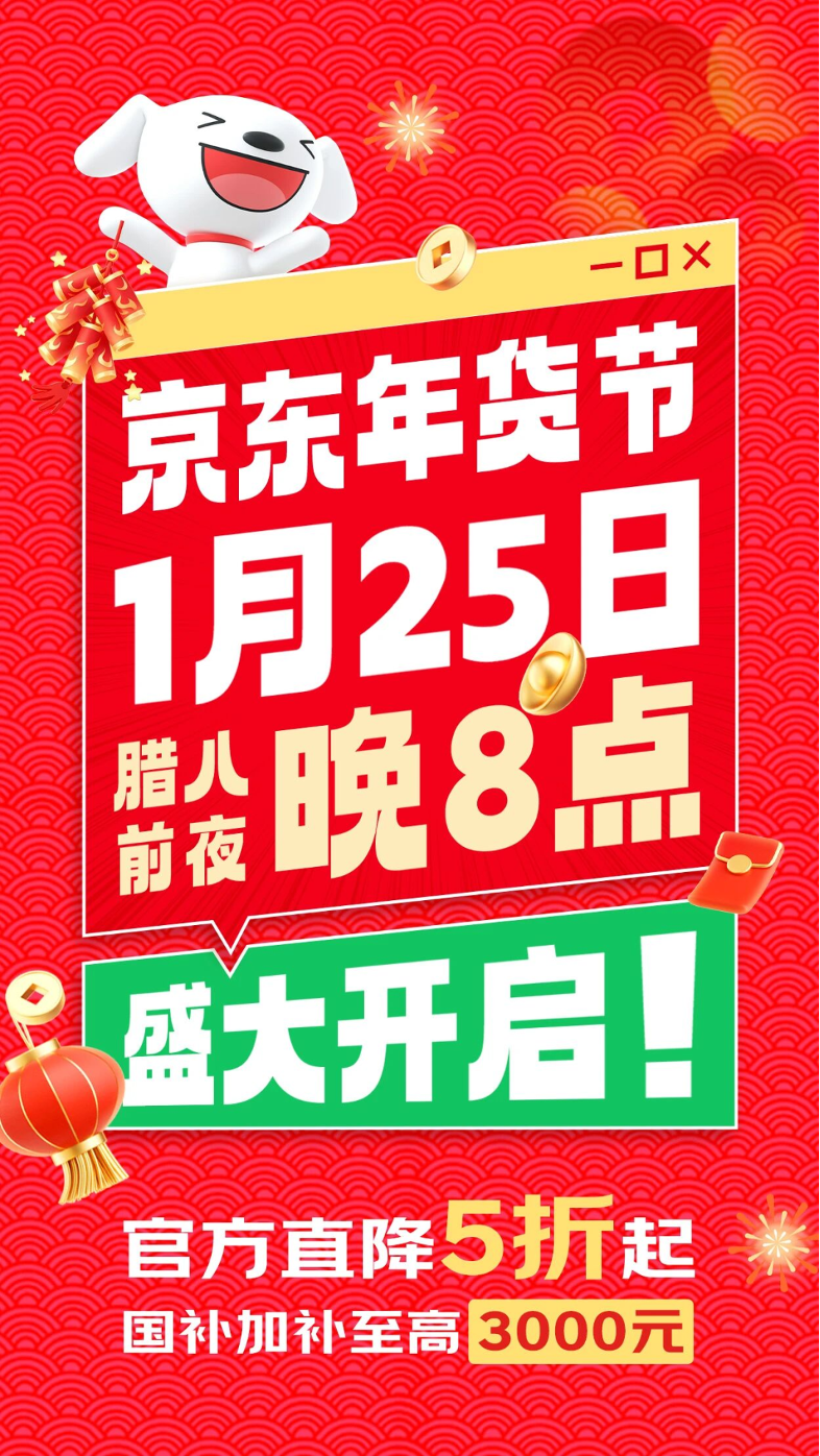 本报讯 (记者梁傲男)1月25日晚8点,京东年货节盛大开启。不仅有官方直降5折起、国补加补至高3000元等重磅福利,而且还邀请到蔡明、雷佳音、刘宇宁、张艺兴、章若楠等明星加盟助阵,推出四大惊喜日,为消费者带来多档惊喜活动。