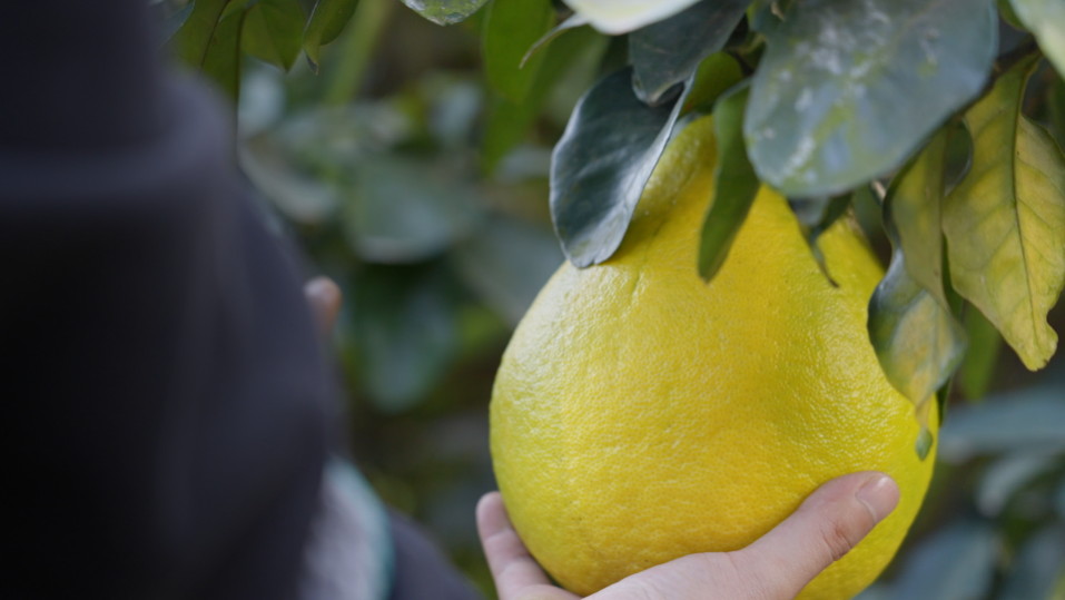 ▲梅州柚子由“论斤贱卖”升级为“按个精品”。(李孟麟/摄)